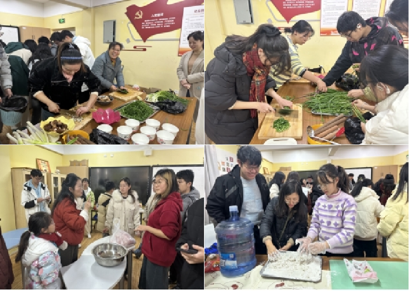 活动亮点纷呈,将传统与现代完美融合。志愿者们各司其职,在宽敞明亮的活动室,一场其乐融融的烹饪盛宴火热上演。老师与同学们并肩作战,亲手制作饺子和汤圆,共同烹饪出新年的第一份温馨与甜蜜。